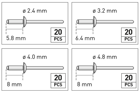 – Szegecskészlet Ø 2,4 – 4,8 mm