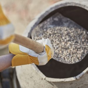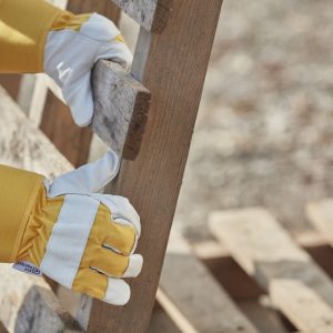 Robusztus bivalybőr kesztyű | A bőr vastagsága kb. 1,0 mm | Pamut kézfej | dupla varratok a hosszabb tartósságért | gumírozott mandzsetta kb. 7 cm | bélelt tenyér