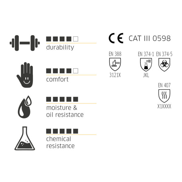 • vegyszerállóság az EN 374-1 szerint B típus: