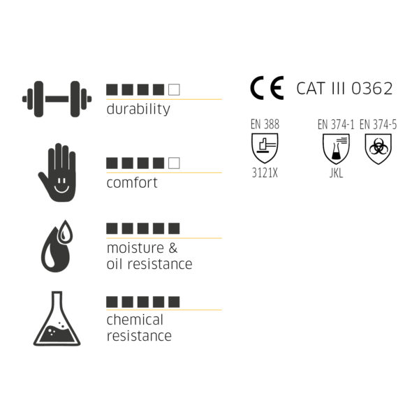 Kémiai ellenállás az EN 374 1 szerint B típus: