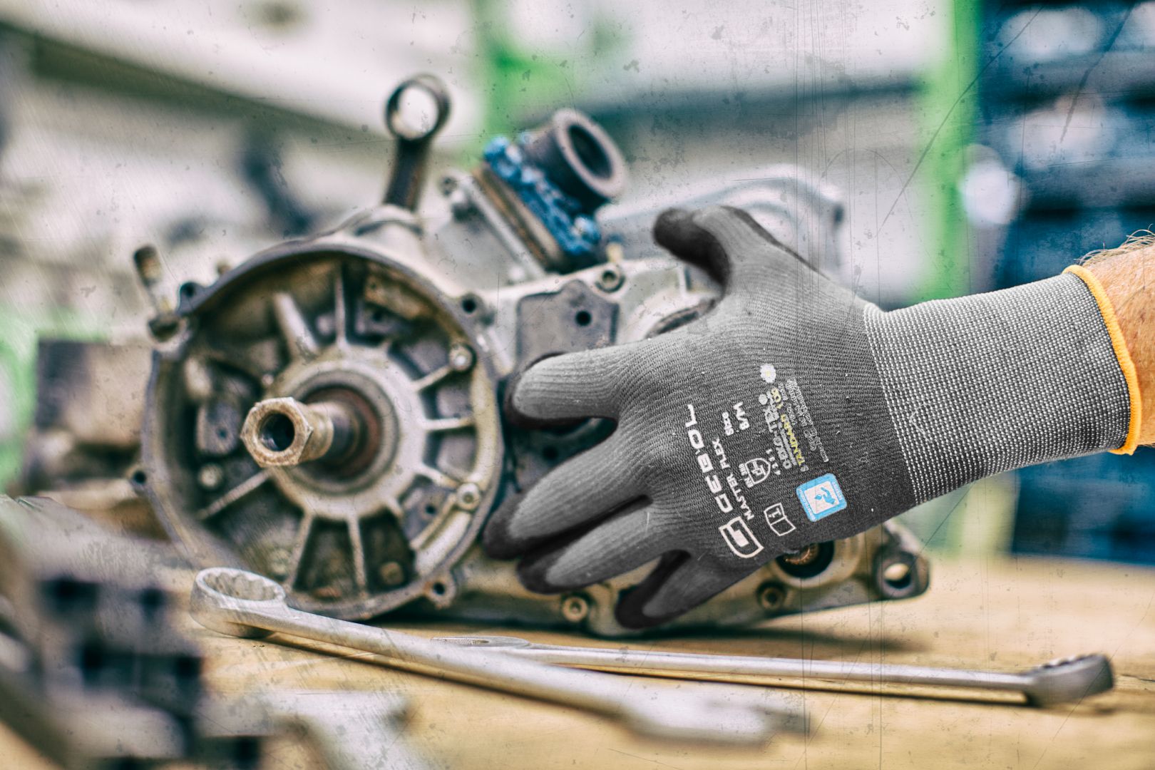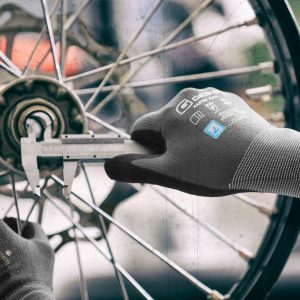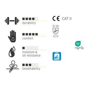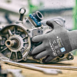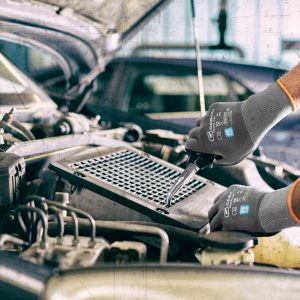 Varrat nélküli, könnyű szerelőkesztyű nitril bevonattal, homokos felülettel | nagyon jó illeszkedés és magas viselési kényelem | optimális kézügyesség és biztos fogás még sima tárgyak esetén is | jó ellenállás az olajokkal és zsírokkal szemben