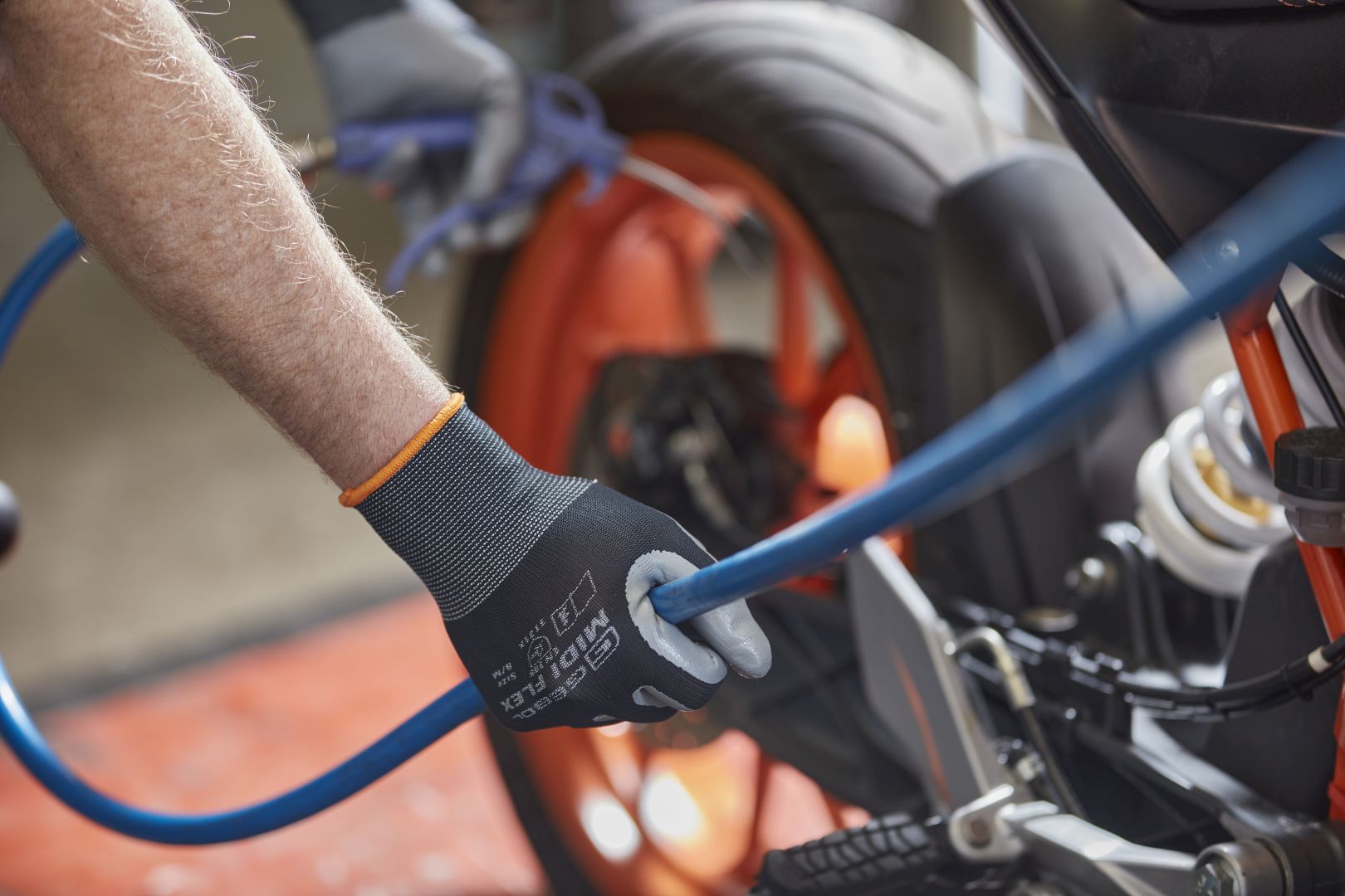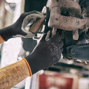 varrat nélküli, könnyű szerelőkesztyű, sűrű nitril bevonattal a tenyérrészen | alkalmas nedves és olajos tárgyakkal való munkavégzéshez