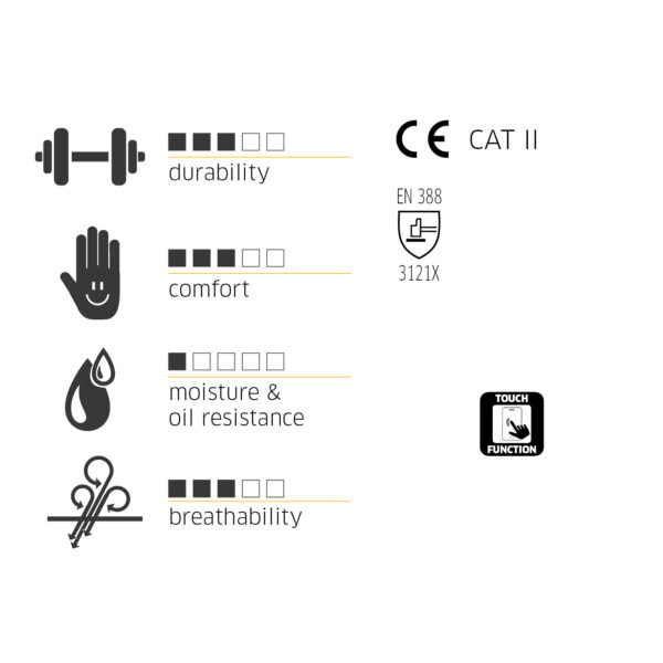 varrat nélküli, könnyű szerelőkesztyű tartós PU bevonattal | jó illeszkedés és kényelem | optimális kézügyesség | biztos fogás még sima tárgyaknál is | Kifejezetten érintőképernyős működtetésre tervezve, mind a mutatóujjban, mind a hüvelykujjban rézszál használatával | ipari kiszerelésben is kapható (12 pár ömlesztett)